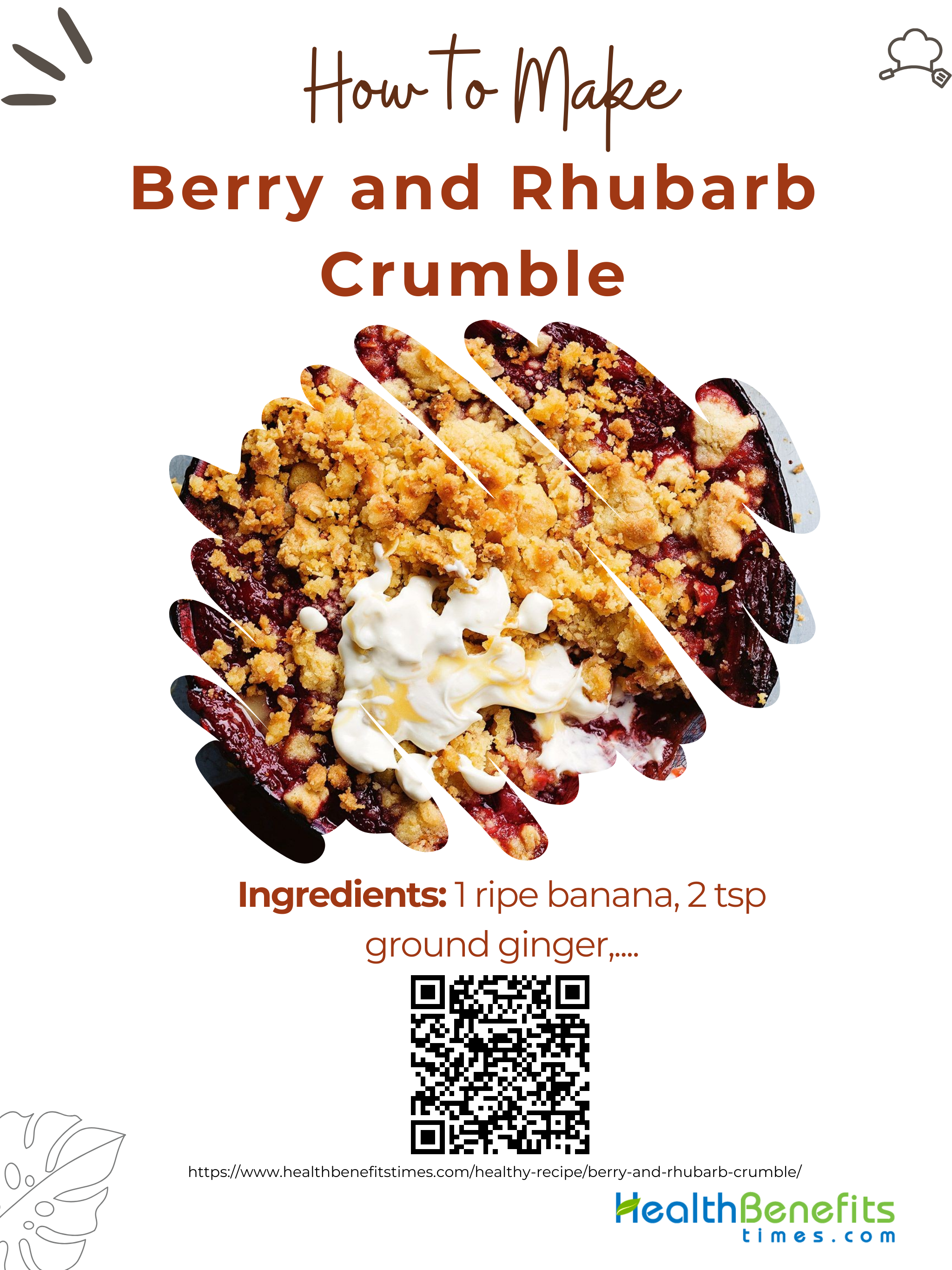 The Berry and Rhubarb Crumble is a dessert that combines the tartness of rhubarb and apples with the sweetness of blackberries under a crumbly, nutty topping. Starting with a blend of butter, rolled oats, flaxseed, almonds, and spices mixed with the natural sweetness of a mashed banana, this crumble's topping is uniquely flavorful and wholesome. The fruit base is a simple yet delicious mix of rhubarb and apples softened in butter, with fresh blackberries added for bursts of flavor. Assembled in a greased baking dish and topped with the oat mixture, the crumble bakes to a golden crisp. Served hot, it's perfect with a dollop of Greek yogurt, crème fraîche, double cream, or a scoop of ice cream, making it an adaptable dish for dessert or a decadent breakfast option.