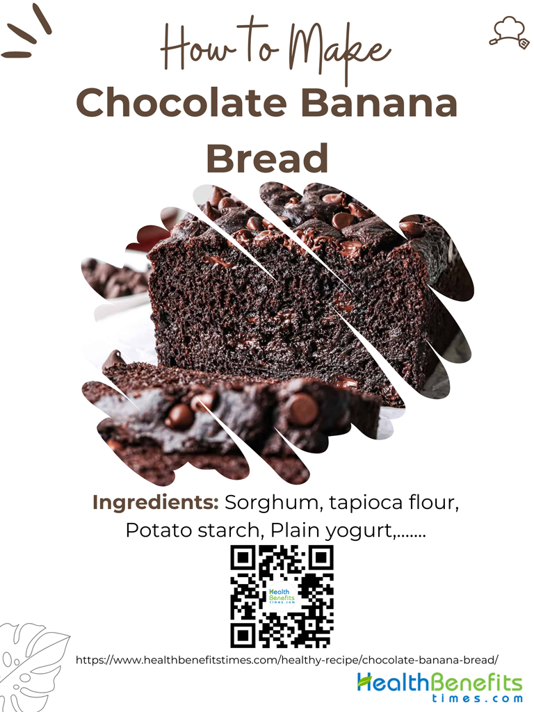 Chocolate Banana Bread is a delightful twist on traditional banana bread, combining the rich flavors of chocolate with the sweetness of ripe bananas. Its origins can be traced back to early 20th-century American baking, where home cooks sought to innovate classic recipes. This bread transcends cuisines, fitting into various culinary traditions, particularly American and modern gluten-free diets. It's commonly served as a breakfast option, dessert, or afternoon snack, offering a comforting indulgence for any occasion. The major ingredients include brown sugar, sorghum flour, tapioca flour, potato starch, cocoa powder, ripe bananas, yogurt, eggs, melted butter, and chocolate chips, all blended together to create a moist and flavorful loaf. The method involves mixing dry ingredients, pureeing bananas, combining wet and dry ingredients, folding in chocolate chips, and baking until firm and aromatic. The result is a moist, tender bread with a rich chocolate flavor and hints of banana sweetness, making it a delectable treat enjoyed by all.