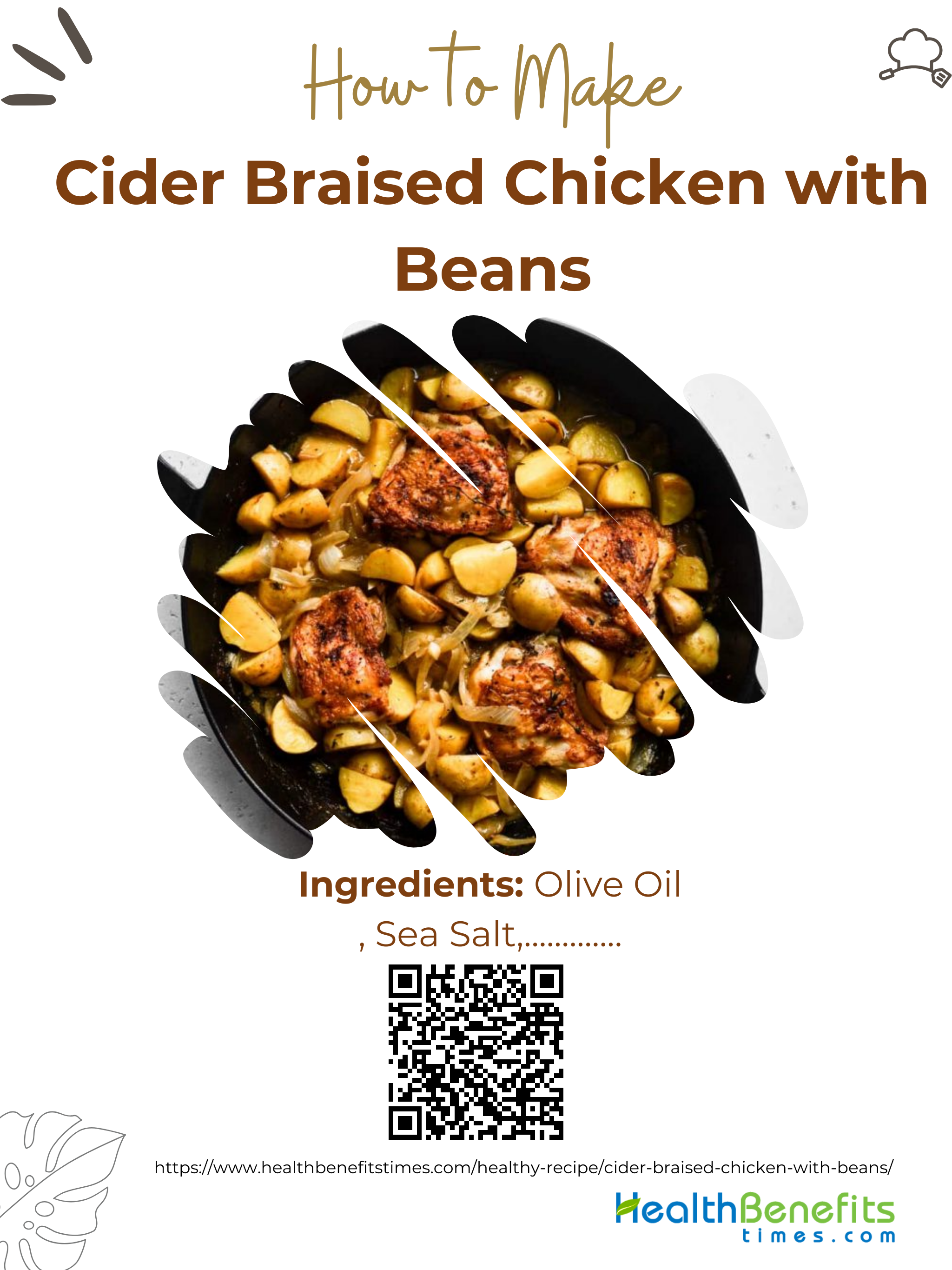 Cider Braised Chicken with Beans is a dish that perfectly blends apple cider with chicken and beans. Starting with skinless chicken thighs. The inclusion of smoked bacon adds a depth of flavor, while shallots or onions and garlic create a fragrant base that's further enriched by the earthiness of thyme. Cannellini beans bring heartiness to the dish, making it a well-rounded meal when combined with the mustard-enhanced sauce. Optionally topped with a dollop of crème fraîche for a creamy finish.