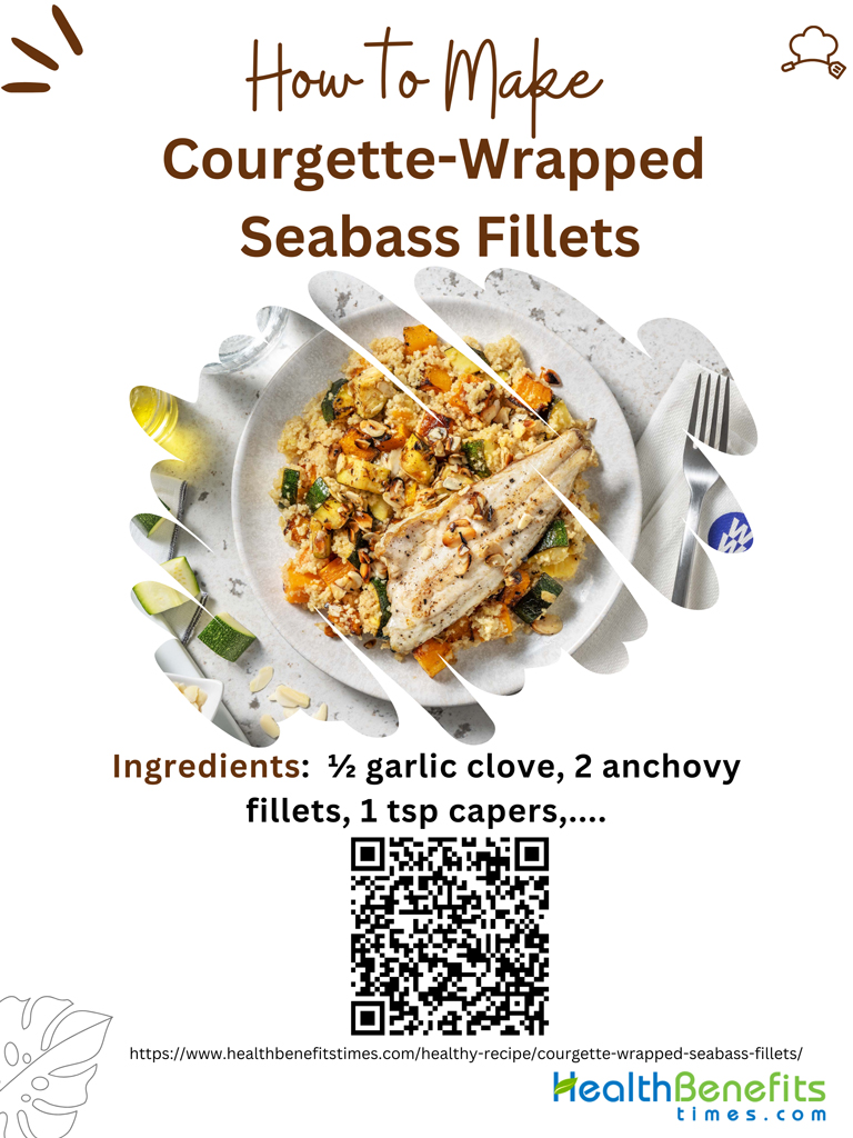 Courgette-Wrapped Seabass Fillets is a delightful dish, blending the mild taste of seabass with the fresh crunch of courgette. Begin by slicing courgettes into long ribbons with a vegetable peeler or mandolin. Dry the seabass fillets, then wrap them in courgette ribbons, securing with the natural cling of the vegetable. For a burst of flavor, prepare a salsa verde by blending parsley, tarragon, olive oil, garlic, anchovies, capers, and lemon juice until smooth. This green sauce adds a zesty freshness to the dish. Before cooking, let the wrapped fillets chill in the fridge to set their shape. Cook in a hot pan until the courgette ribbons char slightly and the fish is tender, presenting a mix of textures and flavors. Serve atop a bed of the remaining courgette ribbons dressed in salsa verde, garnished with toasted almonds and a squeeze of grilled lemon for a touch of smoky acidity.