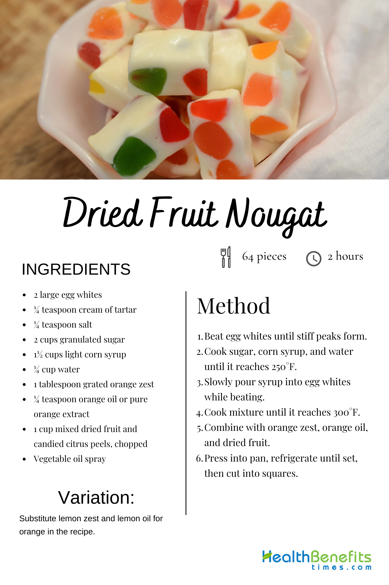 Nougat making is filled with oranges and mixed dried fruits in the Fruity Orange Zest Nougat Squares. This recipe, yielding 64 pieces, is a testament to the experimentation of candy making, blending whipped egg whites with sugar and corn syrup, all mixed with orange and dried fruits and candied citrus peels. With an active preparation time of 25 minutes and total period of 2 hours, including chilling. From preparation of the pan with foil to the finally cutting the set nougat into bite-sized pieces. The Fruity Orange Zest Nougat Squares invite you to homemade candy.