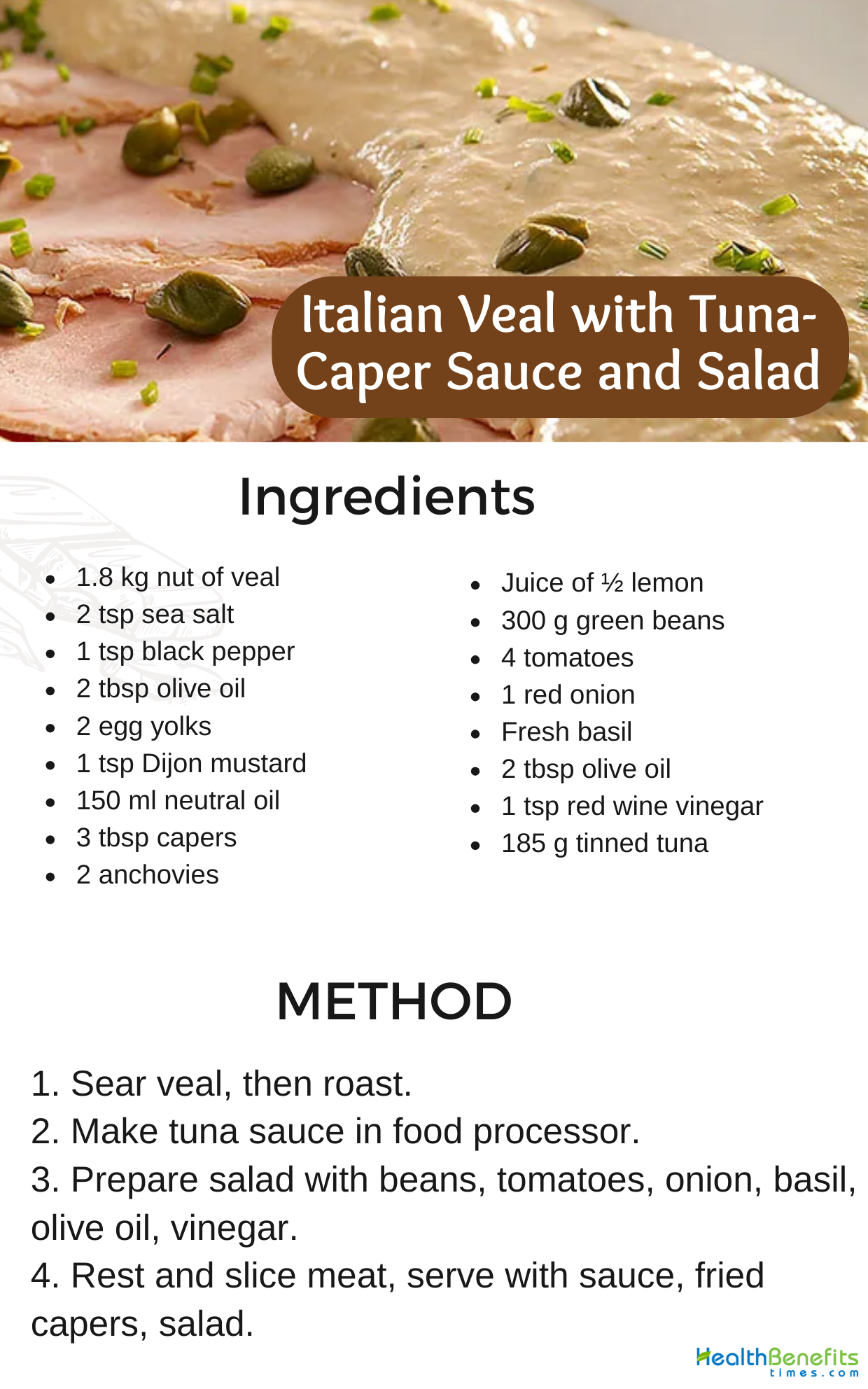 Slice the rested veal into 1 cm thick pieces. Arrange the slices on plates, generously topping them with the homemade tuna sauce and a sprinkle of fried capers for an extra burst of flavor. Accompany each serving with a portion of the green bean and tomato salad. This dish is perfectly suited for a warm meal or as a centerpiece for a room-temperature, family-style feast, offering a harmonious blend of flavors and textures that epitomize Italian culinary tradition.