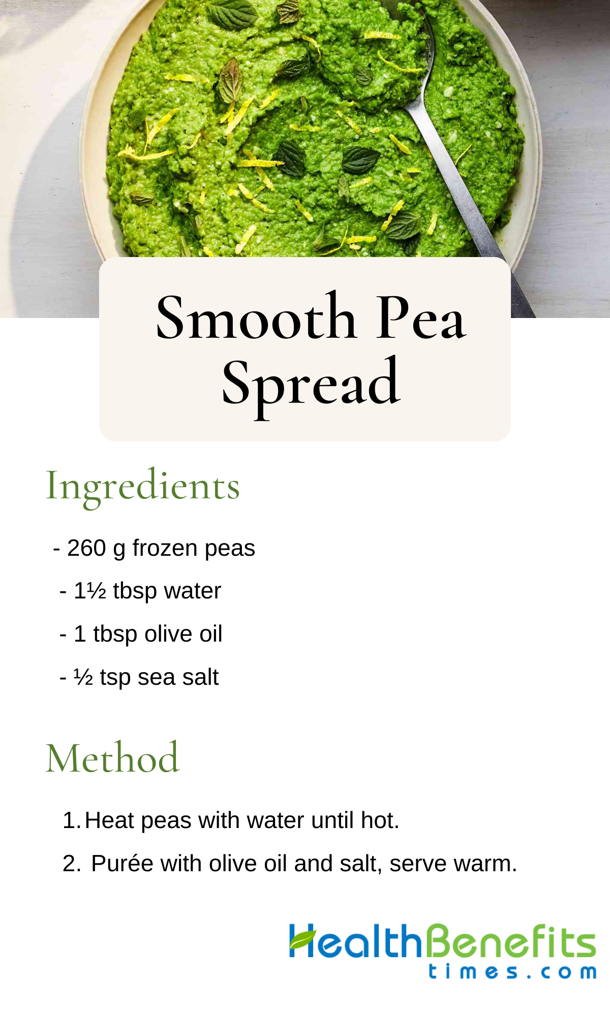 Smooth Pea Spread is a vibrant and healthy option that serves two. Start by placing 260 grams of frozen peas and 1½ tablespoons of water in a saucepan. Heat the mixture over medium heat until the peas are thoroughly warmed. This process helps in retaining the bright green color and natural sweetness of the peas. Next, transfer the hot peas into a blender or food processor. Add 1 tablespoon of olive oil and ½ teaspoon of sea salt to the peas. The olive oil adds a smooth texture and a hint of richness. Blend everything together. Serve it warm as a delicious side dish, a spread on toast, or as a dip for your favorite vegetables.