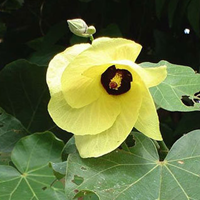 This flower is commonly known as Indian Roselle. The plant has solitary yellow flowers and is stalk-less. It is an annual or perennial shrub growing up to 7 to 8 feet.