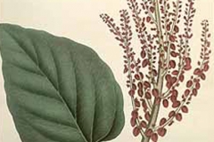 Flowers are pedicellate and dark purple. Perianth are smaller and oblong elliptic. Filaments are subulate. Ovary is rhomboid-obovoid and stigma is oblate and muricate. Flowering normally takes place from June to July. Fertile flowers are followed by fruit that is ovoid-ellipsoid, broadly ellipsoid or ovoid oblong in shape, large (0.5-1.5 cm) long and purple with wings more narrow that thick and notched at both ends. Harvesting of seeds starts from July to September.
