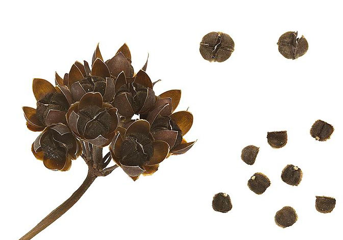 Fertile flowers are followed by capsule that is ovoid to conical in shape, measuring about 10-12 mm long, mucronate by style-base and hairless or sparsely hairy at the top. Seeds are truncate apically, brown, 5-6 mm long, densely pubescent with short, erect trichomes. They are covered with spreading, black or brown hairs.