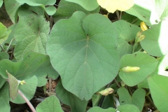 Leaves are ovate to oblong in shape, with a size of measuring about 4-16 cm long and 1-9 cm wide, cordate base and rounded or truncate in shape. The basal lobes are rounded or angular, acuminate apex where both sides are sparsely to densely hairy. Petiole is measuring about 1.5-6 cm long.