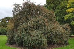 | Leaf | Dark green, thick, glossy, ovate or elliptic, 5-12 cm long, 2.5-5.5 cm wide, glabrous, margins usually thickened, undulate, regularly or irregularly toothed, the teeth stiff, spreading, spinose, rarely entire |