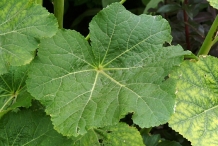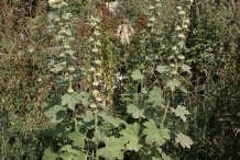 Hollyhock is an erect, herbaceous, biennial or short lived perennial plant which grows upto 1.5-2 m high. The stems are terete, pubescent and light green. Leaves are orbicular, medium green and 7-15 cm across. The plant is large, showy, pink, mauve, red, white, purple and yellow of funnel shaped and 7-12 cm across. The schizocarp fruit has 15 to 20 small, oval and flattened seeds.