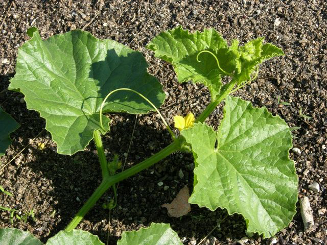 Honeydew is annual, trailing, prostrate or rarely climbing herbs which grow best in full sun or diffused sun and normally prefers well-drained, dark, warm soil, with high organic matter content. Melons can be grown on heavier soils if well drained in which case raised beds may be beneficial. Stems are angular and hirsute, sometimes becoming circular and glabrous. Leaves are sub-orbicular to reniform, shallowly 5-7-lobed, lobes obtuse, both surfaces covered with soft villous hairs; size variable, 8–15 cm long and broad, smaller in wild forms. Flowers are usually andro-monoecious; male flowers fascicled, perfect or female flowers solitary. Male flowers with villous, campanulate calyx of 5 subulate lobes, 5 lobed sub-campanulate yellow corollas, and 3 free stamens. Bisexual flowers are similar with pubescent globose, ovoid or cylindrical ovary, with short, simple style and 3–5 obtuse stigmas.