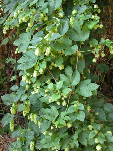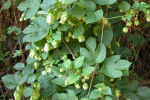 Hop is a dioecious, rhizomatous, vigorous, twining perennial, herbaceous climbing vine or plant that grows about 7 meters tall. The plant is found growing in woodland Garden Sunny Edge, Dappled Shade, Shady Edge and Hedgerow and normally grows in average, medium moisture, well-drained soils. It also prefers moist, rich soils, but has some tolerance for drought as well. It has stout and perennial root systems. Stem is of a twining nature, reaching a great length, flexible and very tough, angled and prickly, with a tenacious fiber.