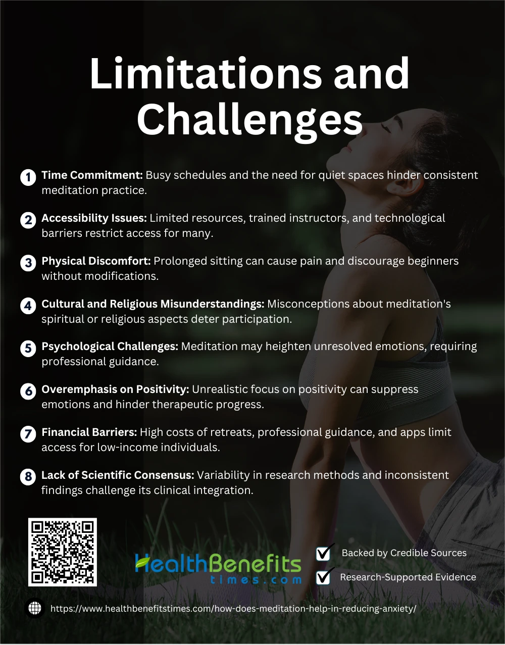 - Regular meditation practice has been shown to decrease stress levels, thereby alleviating symptoms of anxiety.