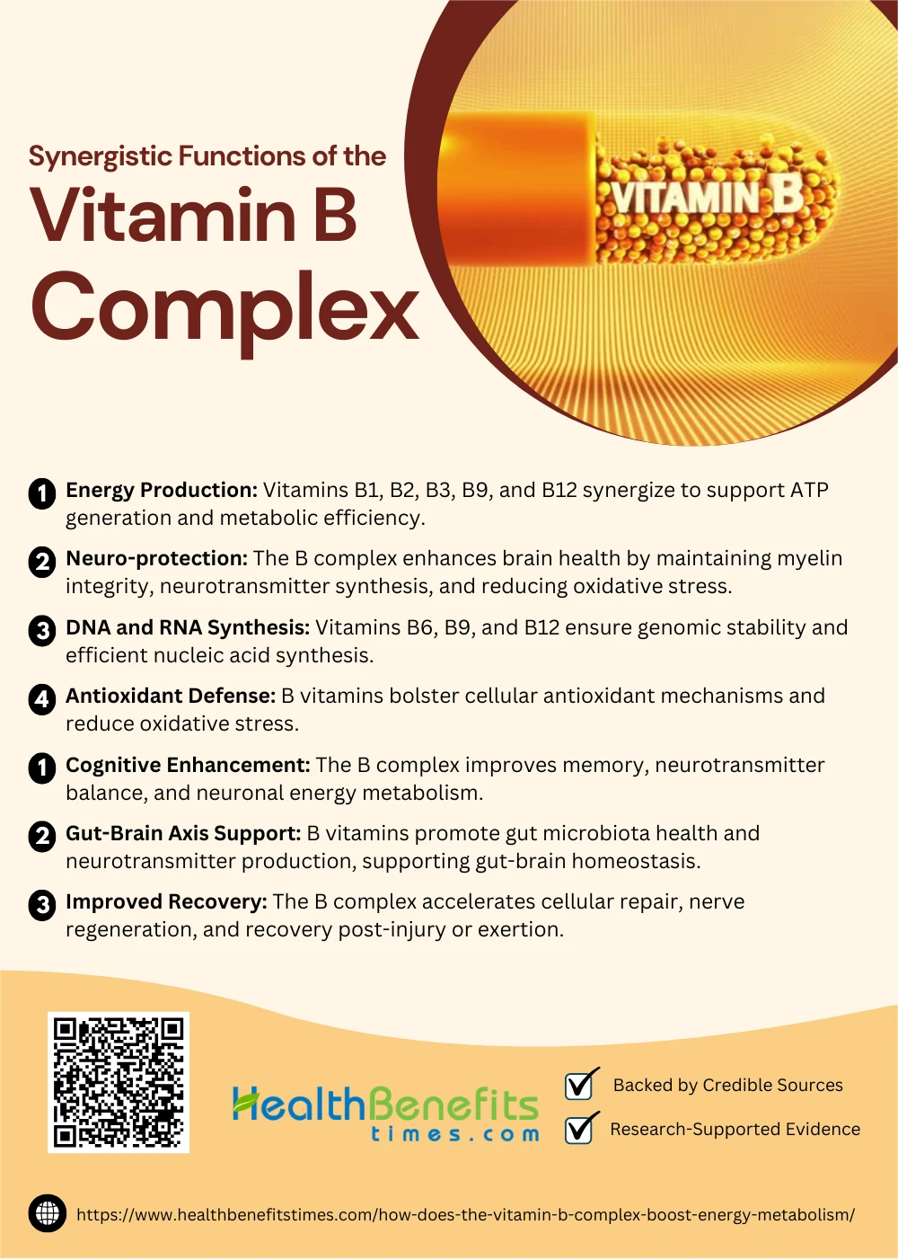 The vitamin B complex works synergistically to support vital bodily functions, including energy production, nervous system health, and overall cellular efficiency.