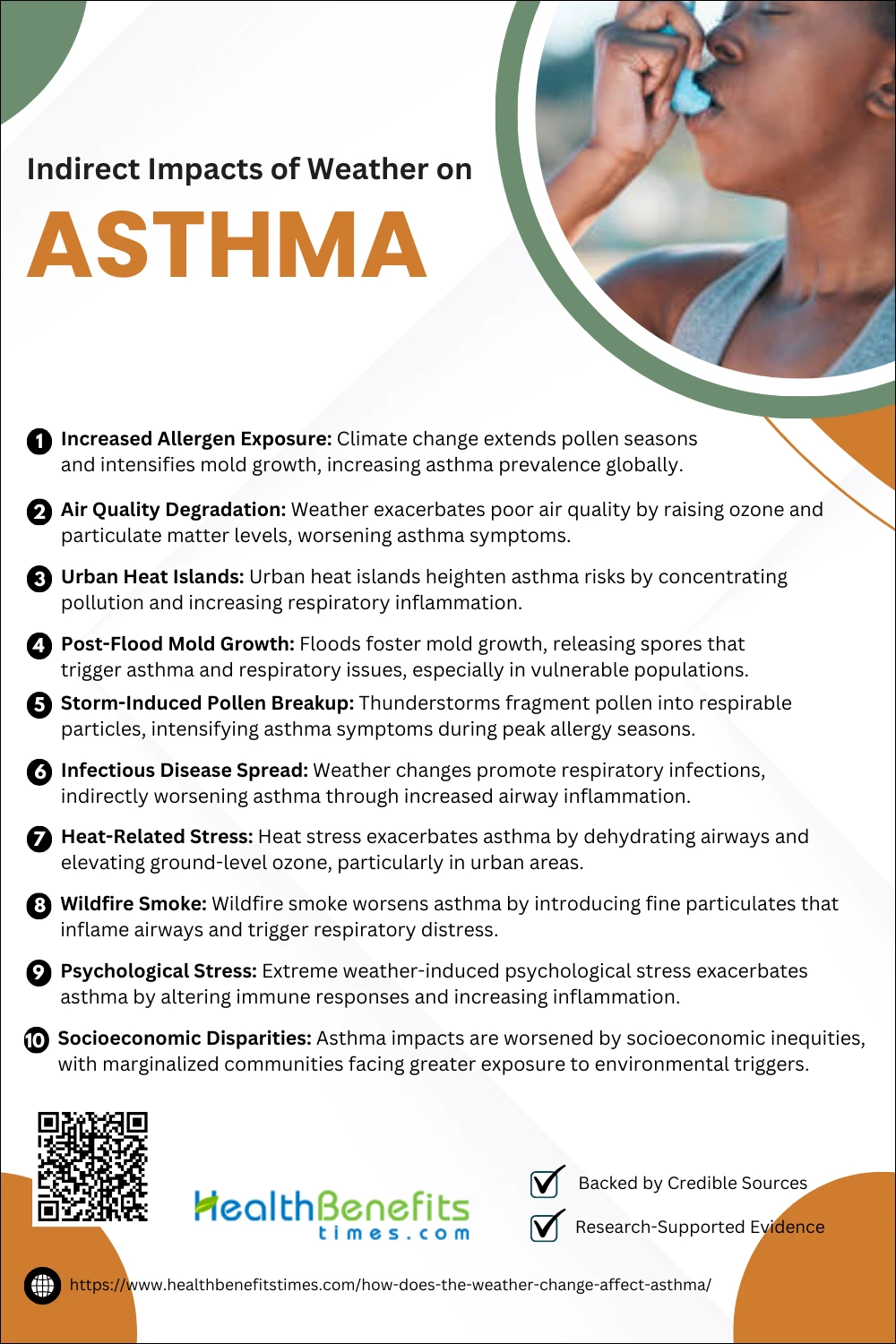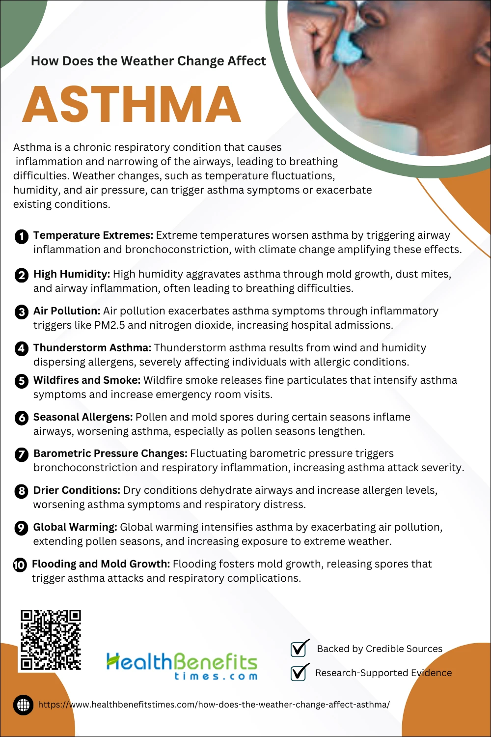 • Weather changes, such as temperature fluctuations, humidity, and air pressure, can trigger asthma symptoms or exacerbate existing conditions.