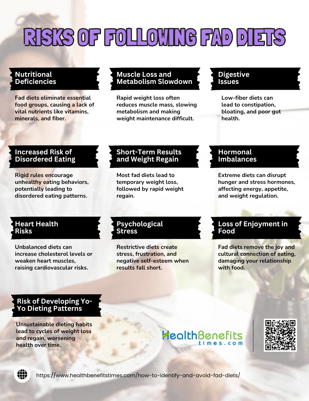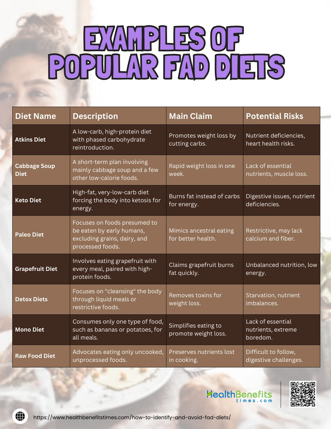 - Exaggerated Health Claims: Fad diets may claim to detoxify the body, target fat loss in specific areas, or cure diseases without credible evidence.