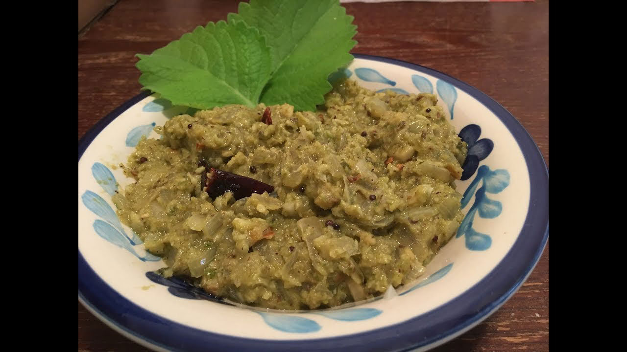 Leaves are undivided (simple), broadly ovate to sub orbicular with a tapering tip (ovate) and very thick. They are 5–7 cm (2.0–2.8 in) long and 4–6 cm (1.6–2.4 in) wide. The margins are coarsely crenate to dentate-crenate except in the base. They are pubescent (thickly studded with hairs), with the lower surface possessing the most numerous glandular hairs, giving a frosted appearance. The petiole is 2–4.5 cm (0.79–1.77 in) long. The taste of this leaf is pleasantly aromatic with an agreeable and refreshing odor.