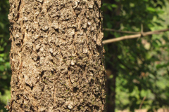 Bark Bark is about 1.25 cm thick, grey, rough, longitudinally fissured in small irregular scales, blaze pink with whitish markings and older trees exuding a blood red astringent gum resin