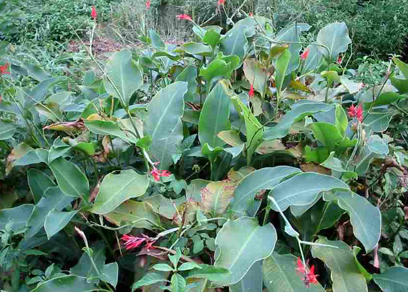 Indian shot is a coarse, rhizomatous, erect, robust, long lived perennial, herb that grows from 90 centimeters to 3 meters tall. The plant is found growing around villages, roadsides, in coconut plantations, clearings, in forest near streams, marshes, lake margins, spoil banks, roadside ditches, wetland edges, stream banks, old gardens, disturbed sites, waste areas and other moist areas. The plant is grown on most types of soil, except heavy clay, provided there is adequate drainage, since it will not tolerate water logging. The best yields are obtained on deep sandy loam, rich in humus. Roots  are thick,  cylindrical  and creamy  white  in color with  a  diameter  of  2-5 mm  with  numerous  root  hairs. Thinner primary and secondary lateral roots are also seen.