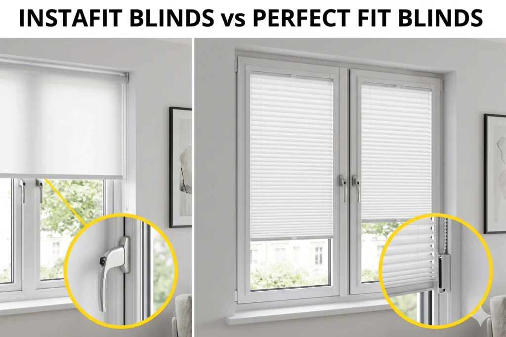 Both InstaFit and perfect fit blinds clip into the rubber bead of a uPVC or aluminium window frame. Neither requires drilling. Neither leaves any mark when removed. Both produce a finished result that is visually indistinguishable from a drilled installation. So why choose one over the other?