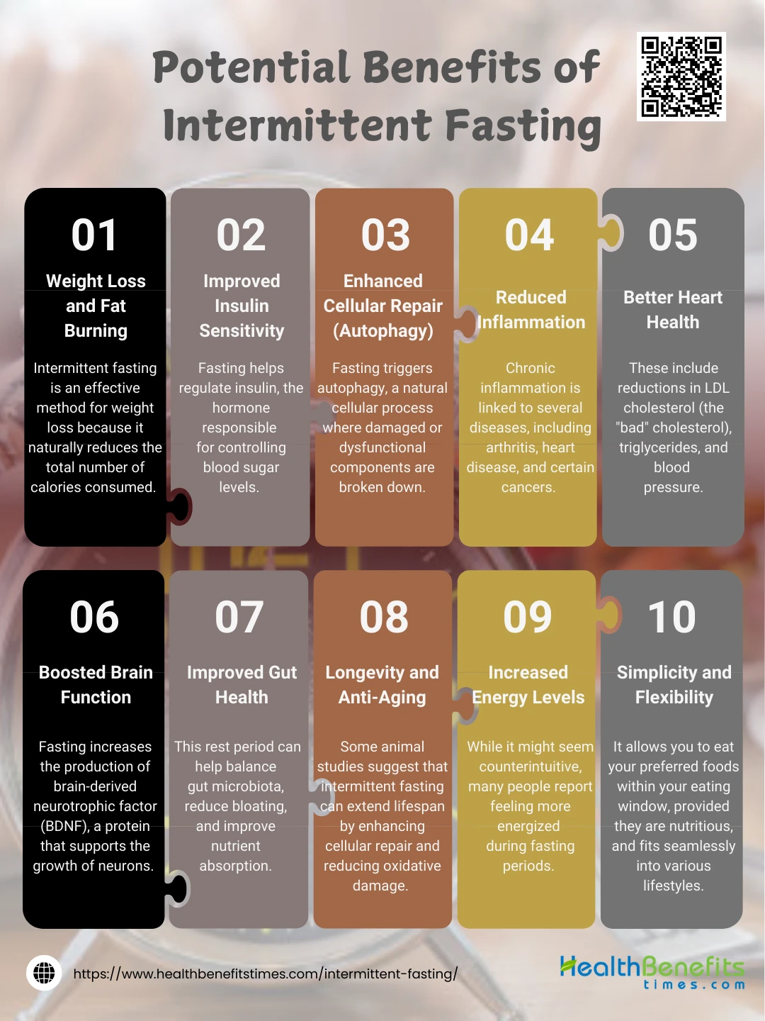 Intermittent fasting offers a range of potential benefits that extend beyond weight loss. By alternating between periods of eating and fasting, the body undergoes metabolic and cellular changes that can positively impact overall health. From improved metabolic efficiency to reduced inflammation, intermittent fasting may support both physical and mental well-being, making it a compelling approach for many seeking long-term health benefits.