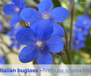Italian bugloss scientifically known as Anchusa azurea is a species of flowering plant in the family Boraginaceae, known by the common names Garden anchusa, Italian alkanet, Italian bugloss, Large blue alkanet, Italian anchusa, Lengua de vaca and summer forget me not. It is a bristly perennial which reaches just over half a meter in height. The plant is native to central, southern, and Western Europe, northern Africa and western Asia, although it also grows naturalized in northern Europe. Other places we find it are Pakistan, Cypress, Russia, and Turkey. Apart from that the plant is well-known elsewhere as a noxious weed. Genus name comes from the Greek word ankousa in reference to a root pigment which was once used as a cosmetic paint for staining the skin. Specific epithet comes from the Latin word azureus meaning sky blue in reference to flower color. Alkanet is a red dye made from the roots of some plants in the genus Anchusa. In Crete it is called agoglossos (Greek: αγόγλωσσος) and the locals eat the tender stems boiled, steamed or fried.