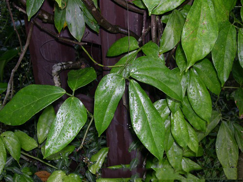 The leaves of this plant are beautiful not only because they are big, but also because they are complicated. These leaves are complex, which means they have more than one leaflet. They can have anywhere from 5 to 13 leaflets and can be up to 30 cm long. Each oval-shaped leaflet, which can grow up to 15 cm long, has a shiny surface and a deep green color. This adds to its beauty. The pointy end of each sheet makes it look even more elegant. The way these leaflets are arranged along the stem and connected to a single stalk makes for a beautiful effect. The plant’s twining growth pattern is also interesting. It uses its tendrils to wrap around and climb nearby trees or trellises in a very beautiful way. This not only makes it look nicer, but also makes it a fun plant to look at and take care of.