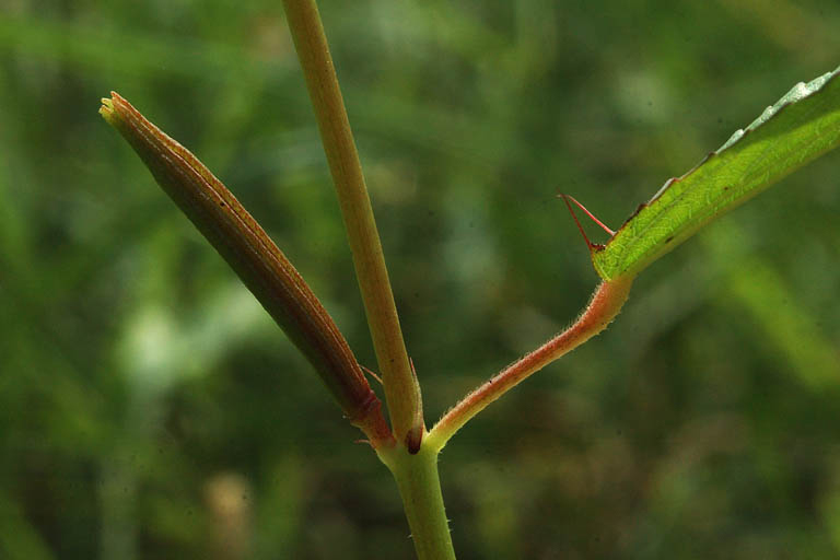 6-10 cm long, 3.5-5 cm broad, elliptic-lanceolate, apically acute or acuminate, glabrous, serrate, the lower serratures on each side |