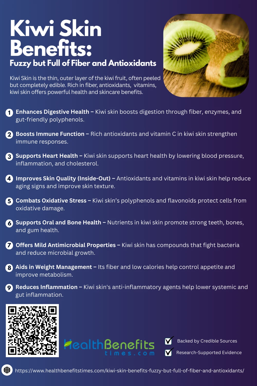 Kiwi skin offers impressive health benefits for your body, thanks to its rich fiber, antioxidants, and vitamins. It supports digestion, boosts immunity, aids weight management, and contributes to overall wellness.
