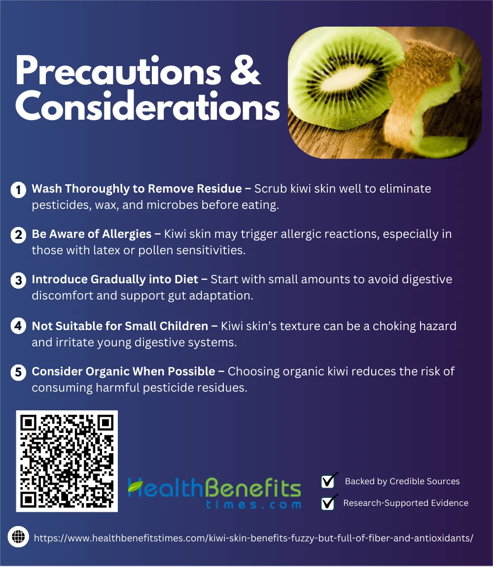 Before adding kiwi skin to your diet, consider a few precautions. Always wash thoroughly, start with small amounts, and monitor for allergic reactions or digestive issues to ensure safe consumption.