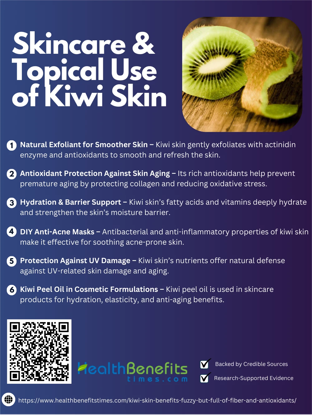 Kiwi skin isn’t just nutritious—it’s also beneficial for skincare. Packed with antioxidants and vitamins, it helps brighten, hydrate, and protect your skin when used in natural, topical treatments.