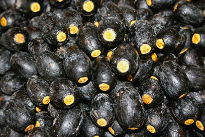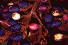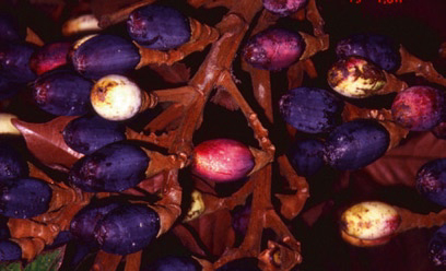 Dabai is the plant which is found in tropical rainforest of Sarawak. Fruits are white when they are still immature and turn to purplish pink and powdery black color when ripened. Seeds are subtriangular in shape with three chambers. It is found in undisturbed lowland forests upto 700 meters altitude mostly on ridges and hillsides. It is found on limestones and usually present as pre-disturbance remnant tree. It is known as black olive but technically, it is not an olive. The tree grows to the height of 21 meters and the furry leaves are thin and twigs are covered with golden brown. Fruits are oblong resembling the shape of olive and has thin and edible skin. The flesh is yellowish white which wraps around three angled seed.