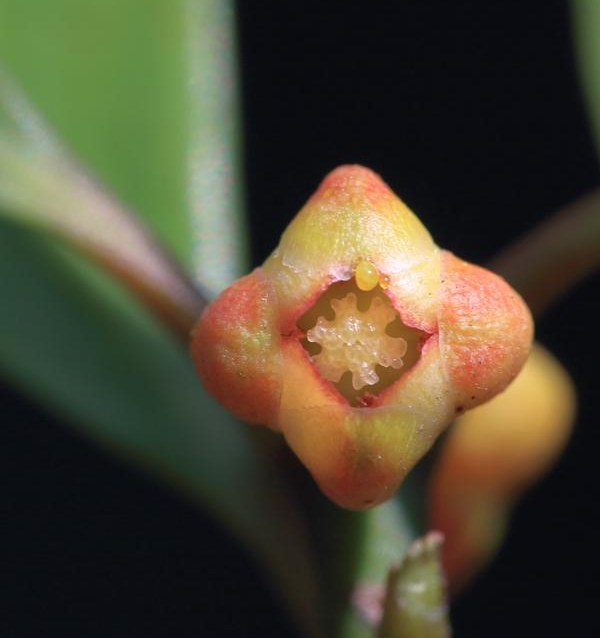 | Flower | Flowers are small, 4-5 merous, heterochlamydeous, dioecious, pseudo-bisexual with fleshy, waxy pink petals and with female and male flowers on separate trees. They are borne directly on the stems, singly or in clusters of up to four and bloom in the dry winter season. |