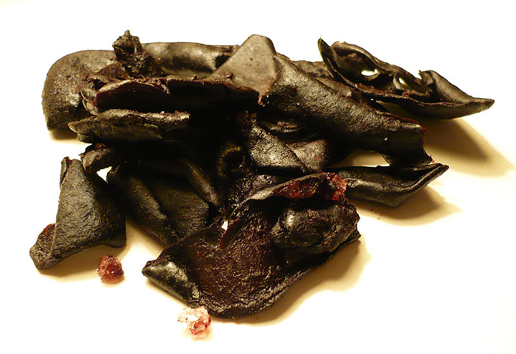 Amsul is made from the peel of the fruits ‘Kokum’. Amsul is a fine ingredient in veg-dishes and curries for the sour taste also it is useful for skin boils and irritation, if rubbed against the irritated parts. In traditional process, fresh kokum fruit is washed properly and cut into two halves to separate the seed, pulp and the rind. The seed and the pulp are mixed with around 10 percent salt. The salt solution leached out from this mixture is used for the dipping of the separated rind. The rind then placed for sun drying during the daytime. The next day the dried sample is again dipped in the salt solution, which was leached on the second day from the salt seed mixture. Then the rind is again placed for drying. The process of dipping and drying is repeated for 4 to 5 times to get the amsul.