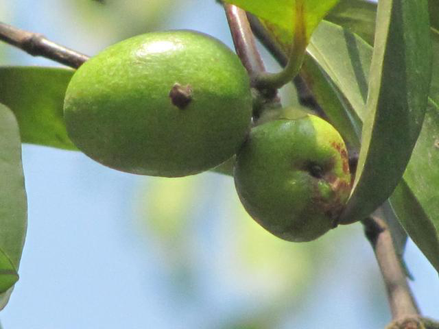 | Fruit Shape & Size | Round, oblong or oval fruit with pointed tips and, are crowned by the four parted stalk less stigma. They are 3 to 4 cm (1.2 to 1.6 in) in diameter. The fruits are grow up to the size of a lemon |