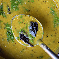 - Grind together ajwain, chilies, black pepper, and coconut together in a blender.