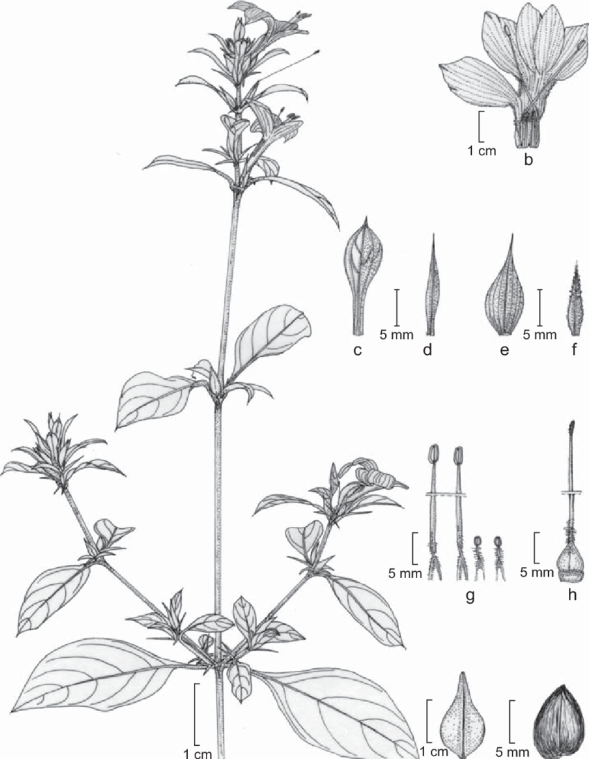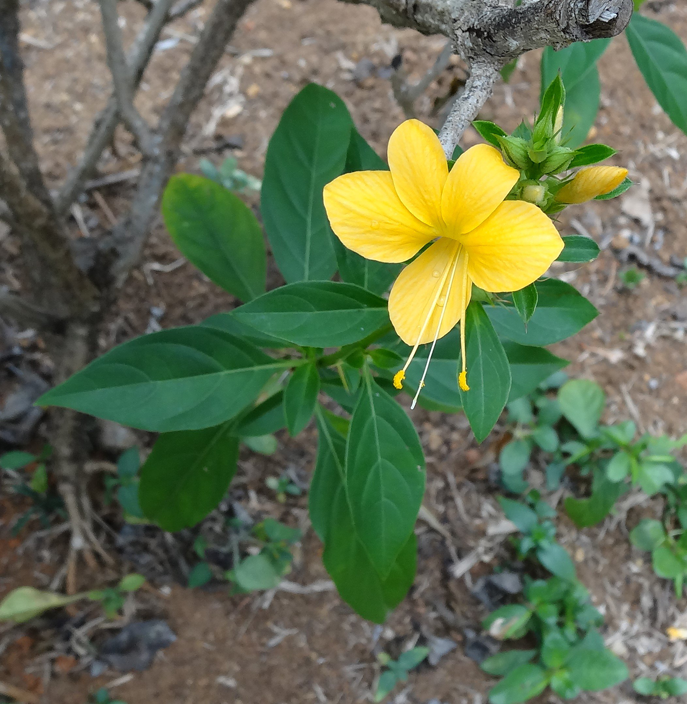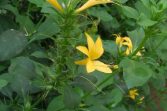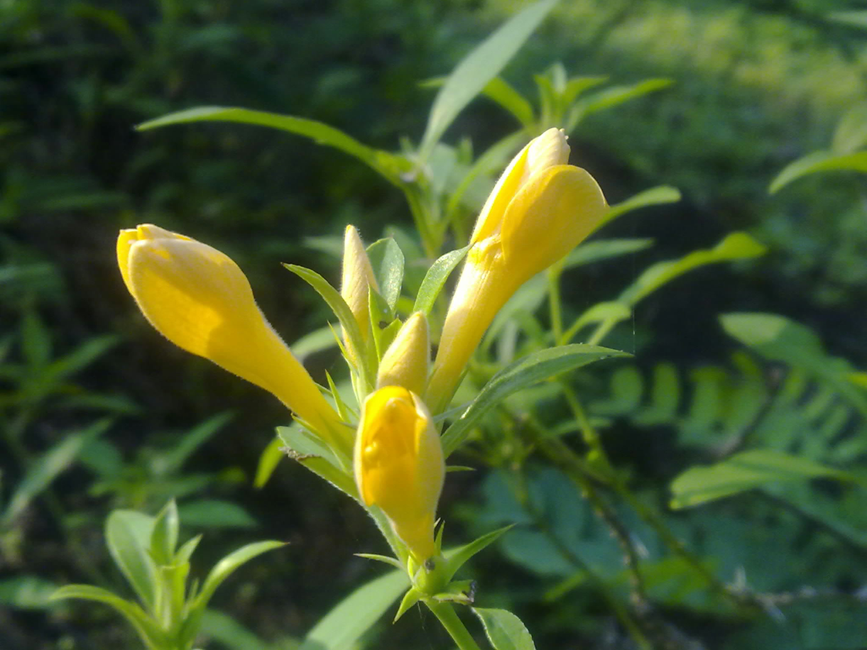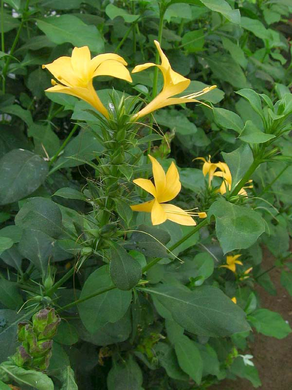 | Flower | Stalk less (i.e. sessile) flowers are borne in branched spike-like clusters at the tips of the branches or in the upper leaf forks (i.e. in terminal or axillary clusters). They are yellow or pale orange in color, tubular in shape (3-4 cm long) with pubescent outside and glabrous inside and protruding stamens |