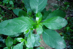 | Leaf | Oppositely arranged leaves are 3-13 cm long and 1.5-4 cm wide and are either oval (i.e. elliptic), oblong or egg-shaped in outline (i.e. ovate). These leaves are hairless (i.e. glabrous) or slightly hairy (i.e. puberulent) on their undersides |