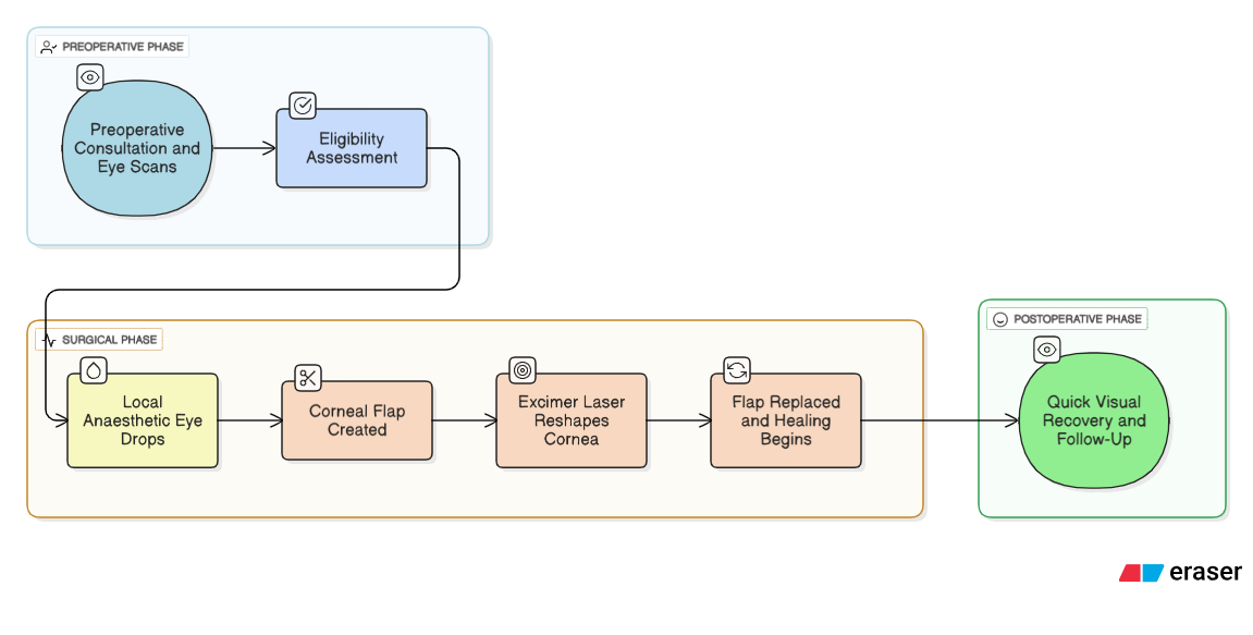 Once eligibility is confirmed, surgery day begins with the instillation of local anaesthetic drops. In femtosecond LASIK, an ultrafast femtosecond laser creates a thin corneal flap, which is gently lifted to expose the stromal layer. An excimer laser then precisely reshapes this exposed area based on your prescription. The flap is repositioned without stitches, sealing naturally.