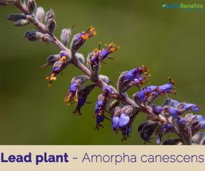 Lead plant scientifically known as Amorpha canescens, is a small, perennial semi-shrub in the pea family (Fabaceae). The plant is native to areas in Manitoba and Ontario. In the U.S. it occurs from Montana east to Michigan, and south to New Mexico and Louisiana. The plant has got several common names including lead-plant, leadplant amorpha, downy indigo bush, prairie shoestrings, buffalo bellows, Amorpha brachycarpa, Downy false indigo and wild tea. Genus name comes from the Greek word amorphos meaning shapeless or deformed in reference to the corolla of this pea family genus lacking wings and a keel. The species canescens is from the Latin and refers to the whitish or hoary color tinge from the fine leaf and stem hair and from which comes the common name of ‘lead’ plant. The alternate name ‘Devil’s Shoestrings’ comes from the deep roots which farmers were never able to plough out. Common name of lead plant refers to the once held belief that the plant was an indicator of the presence of lead in the ground. Some tribes named the plant “buffalo bellows” because the timing of flowering coincided with the time of the year that the buffalo were in rut and bellowing.