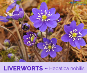 Liverwort is a deep-rooted and hardy plant. The botanical name of the herb, Hepatica, is believed to have originated from the Greek word hepar, meaning “liver,” as well as the Latin word epatikos, meaning “affecting the liver.” Anemone is also of Greek origin and refers to the wind. Two of hepatica’s other common names, liverleaf and liverwort, come from the supposed resemblance of the leaves to the human liver, both of which have three lobes.