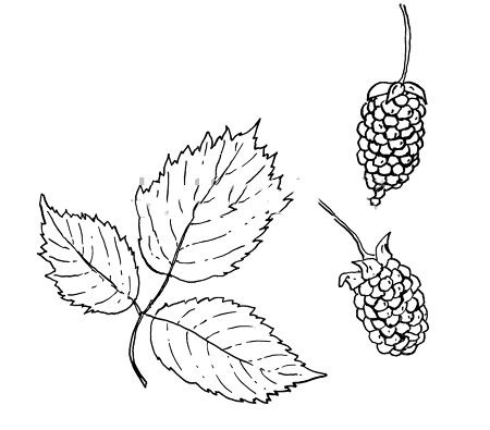 Loganberry is a spreading or climbing shrub that grows about 4.5 m high. The plant is found growing in relatively cold-tender and thrives best in areas with mild winters and warm summers. The plant prefers well drained, humus-rich, loamy soil and is best trained on a wire trellis or other structure. The plant has terete, glabrous stem with soft prickles 3–6 mm long. Leaves are imparipinnately compound, with 3, 5 or rarely leaflets; the terminal leaflet is larger than the rest. Leaflets are sparsely pilose below, broadly-ovate and acute to acuminate tip, rounded bases and coarsely serrated margins and on 3–8.5 cm long petiole. Inflorescence is sub corymbose with 6–12 flowers. Sepals are rarely with prickles. Petals are 12–18 mm long by 7–9 mm wide, elliptic, white. Stamens are normally shorter than styles. Ovoid to oblong, aggregate fruit is as large as the largest size blackberry and is of the same shape, with globules similar to that fruit. Fruits are initially green, ripening dark red to dark maroon to purplish-black. Fruits are pleasant, mild, vinous and delightful to the taste and are normally used syrup, jam, and juice. It can also be a complementary menu of your salad.