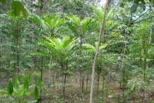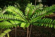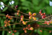 Long jack is slender and evergreen shrub which is 10 m tall. The leaves are pinnate, green; 20-40 cm long with ovate to lanceolate leaflets. The tiny reddish flowers are unisexual and arranged densely. Later the flower turns into mericarps, bicarinate, ovoid fruit which is 1-2 cm long and 0.5-1 cm broad. The fruit is yellowish brown when young and becomes brownish red when ripened.
