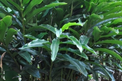 Malacca Ginger is a robust, perennial, rhizomatous herbaceous plant that normally grows about 1.8-3 m or more in height. The plant is found growing in secondary vegetation, bamboo and teak forest, brushwood and ravines, primary forest, shaded rocky outcrops and open areas near streams or rivers. The plant prefers soils rich in organic matter from near sea level. The plant produces leafy stems 2 – 4 meters tall from stout rhizomes just below the soil surface, growing close together in large clumps. Ligule is 2-cleft, up to 1 cm and slightly tomentosa. They have a self-supporting growth form.