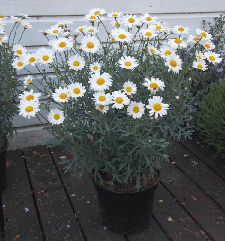 Marguerite Daisy is a short-lived, perennial herb or subshrub that grows about 60-180 cm tall. They can only survive under summer conditions with plenty of sun and cannot survive in areas that are cold and have no sunlight. The plants can grows easily in moderately fertile, medium-textured and well-drained soils. The plant has prostrated to erect, branched, glabrous stem. Leaves are alternate, 2–3 pinnately divided, lobes wedge-shaped to linear, ultimate margins serrated rarely entire. Pruning, pinching and deadheading help to maintain the shrub’s shape and encourage repeat blooming.