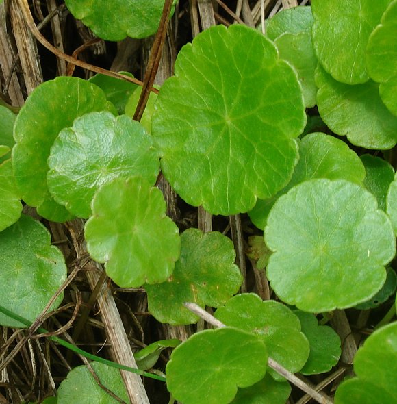 | Leaf | Leaves of Marsh pennywort are circular to kidney-shaped and have smooth margins. They are typically small, measuring around 2 to 5 centimeters (0.8 to 2 inches) in diameter. The leaves are held on long petioles, which attach them to the stems |