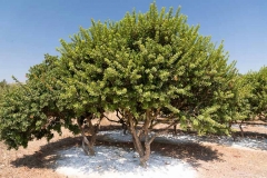 Mastic tree is a dioecious, resinous, evergreen, aromatic shrub or small tree that normally grows up to 4 m (13 ft.) tall. In many open spaces it attains a height of up to 7 m. The plant is found growing in woodlands, dehesas (almost deforested pasture areas), Kermes oak woods, wooded areas dominated by other oaks, garrigues, maquis shrub lands, hills, gorges, canyons, and rocky hillsides of the entire Mediterranean area. The plant grows on all types of soils, and can grow well in limestone areas and even in salty or saline environments, making it more abundant near the sea. The mature bark of the tree is greyish, but on the branches and young trees it is greenish or reddish in color.