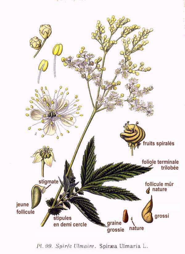 Meadowsweet is used to treat inflammation of mucous membrane and rheumatism.