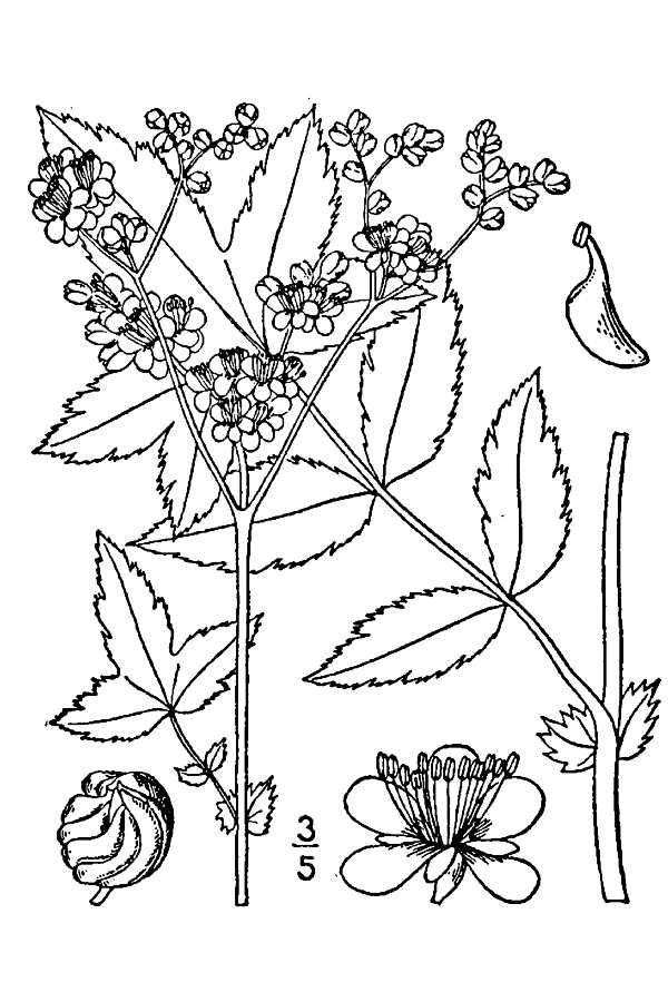 Stems grow from 3-7 ft (1-2 m) high, are reddish to purple, erect and furrowed. Leaves have whitish and downy underneath and dark green on upper side. Leaves are interruptedly pinnate and have large serrate leaflets. It has large terminal leaflets which are three to five lobed measuring 4-8 cm. The plant possess creamy to white flowers which are clustered together in irregular branched cymes with strong and sweet smell. Flowering occurs from early summer to early autumn. Fruit is an achene which is intertwined, alternate and measures approximately 0.12 inch (3 mm) long. It grows on damp and loamy ground. It could be found on shore side meadows, bog margins, damp broad leaved forests and seashore hedgerows.