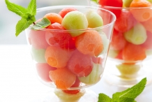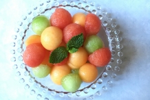 Nothing can exceed the fragrant and sweet flavor of ripe melon. Melons reach their best from early summer to mid-fall. Pale green honeydew and orange flesh cantaloupe has strong and sweet aroma. It becomes softer when they get ripened. The red fleshed watermelons are juicy and when thumped, it should sound hollow and on one side the white patch should be small. Melon balls are the balls of melon which is made with the use of melon baller. The balls might vary from 3/8 inch to 1 inch (1 centimeter to 3 centimeters). Generally, it is used in fruit salads.