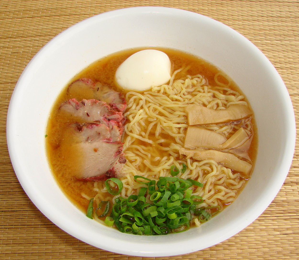 The miso soup is paired with plain rice in Japanese cuisine.